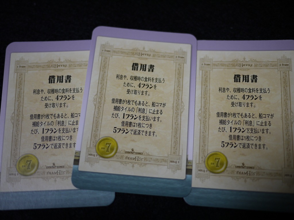 ただし借金を返すには5金が必要で、しかも返さないでいるとゲーム終了時にマイナス七点。
