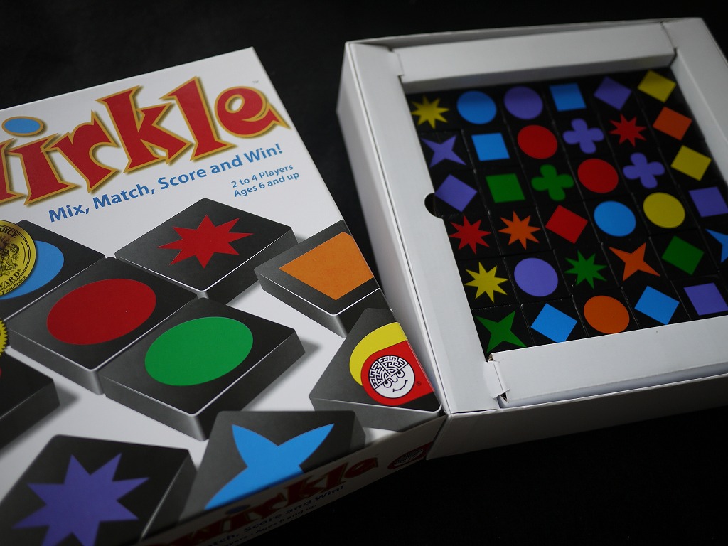 同色で6枚か、同じ形で6枚の列を完成させると「クワークル!」6点+ボーナス6点で、12点が入る。ね、得点計算めんどくさいでしょ?