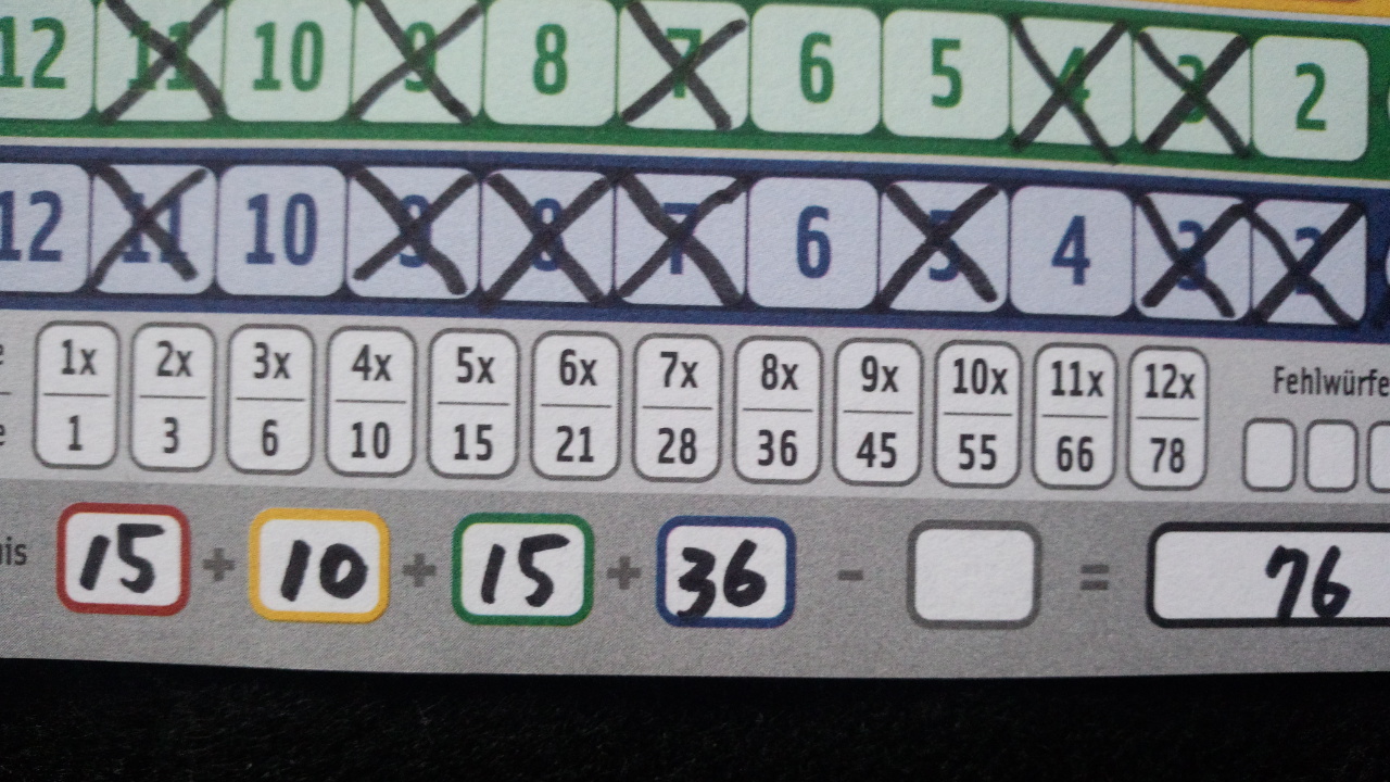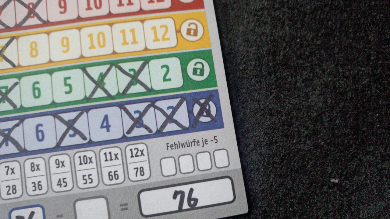 誰かが一列を4個以上埋めていると、「2」や「12」が出た瞬間にロックされてしまう可能性があります。取り除かれた列の数字を全然埋めていなかったプレイヤーは悲惨です。