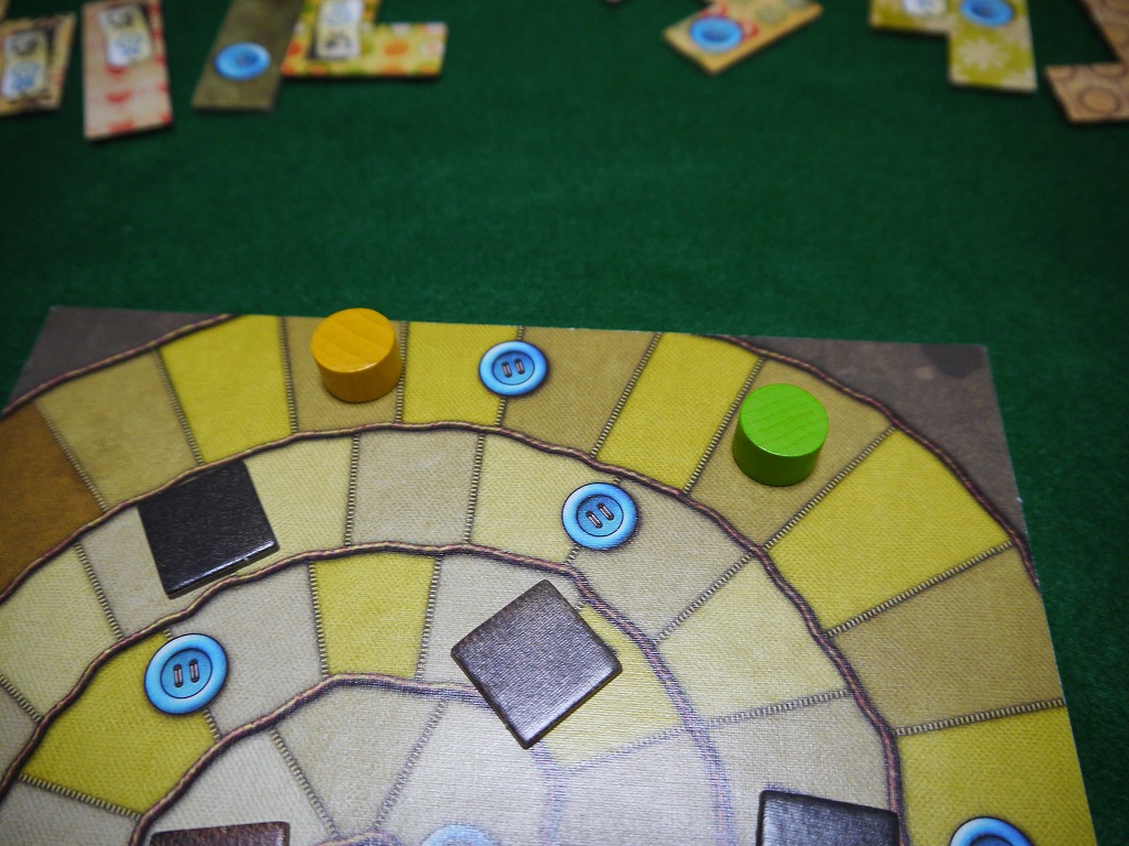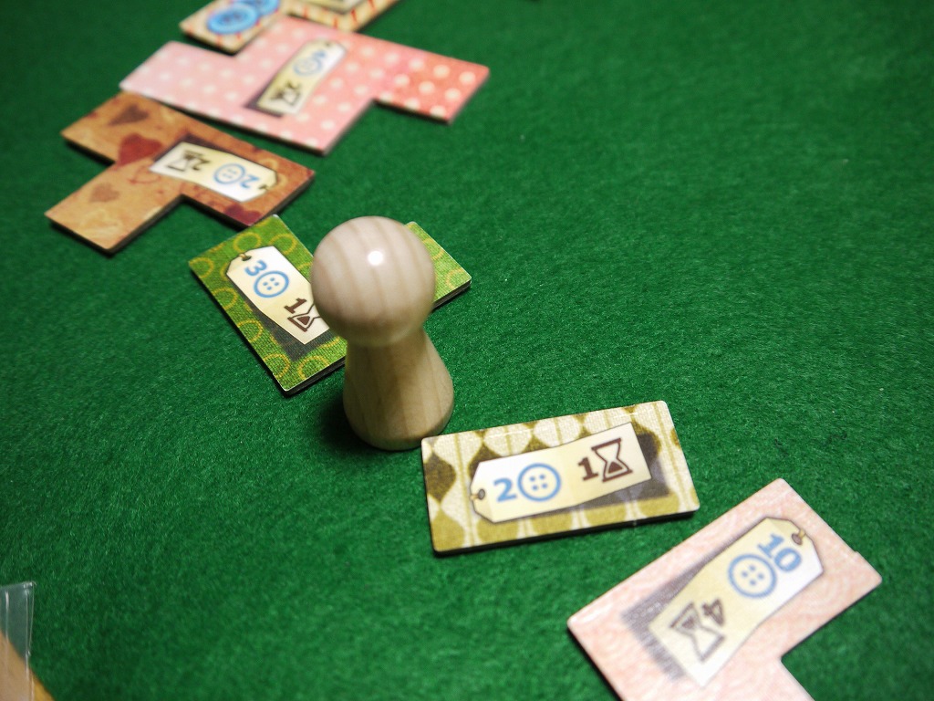 時間だけを進める場合は、「相手のコマの一つ先」まで時間ボード上の自コマを進める。進めた分だけボタンをもらえる。
