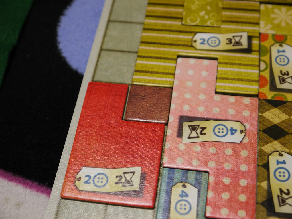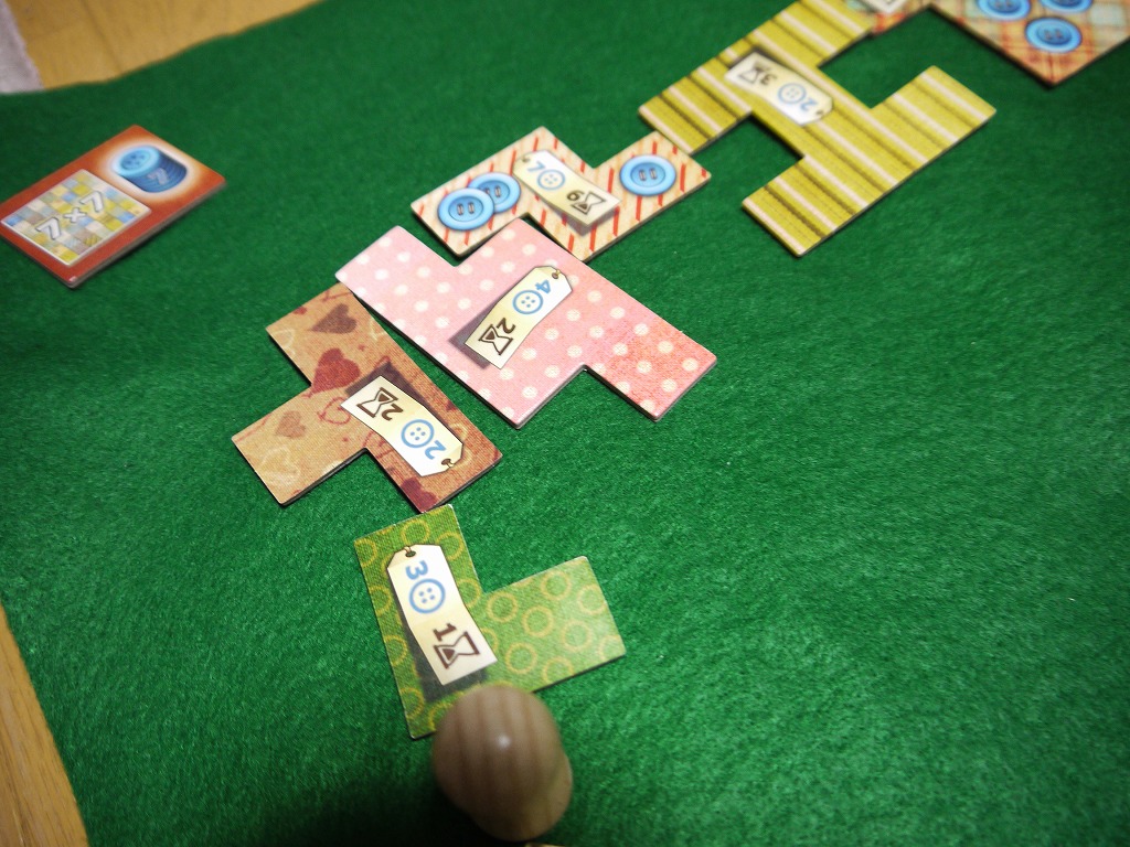 両方のプレイヤーが時間ボードの最後まで辿り着いたらゲーム終了。持っているボタンがそのまま得点だが、自分のパッチワークボード上に空きマスがあったら1マスにつき-2点だ。