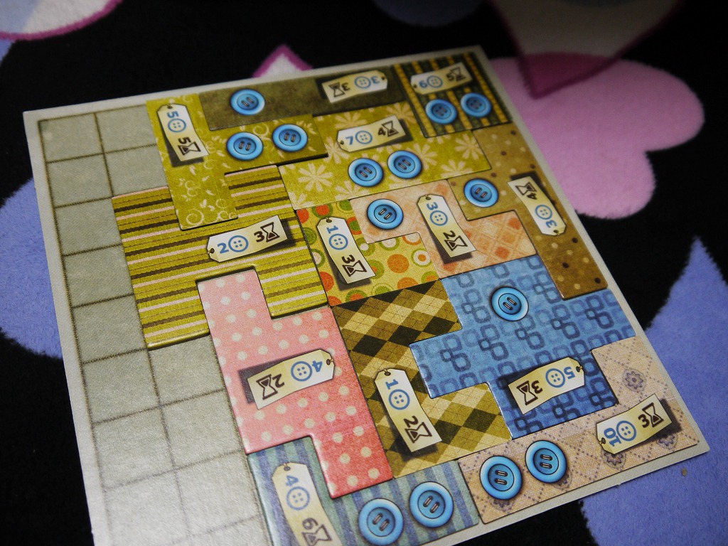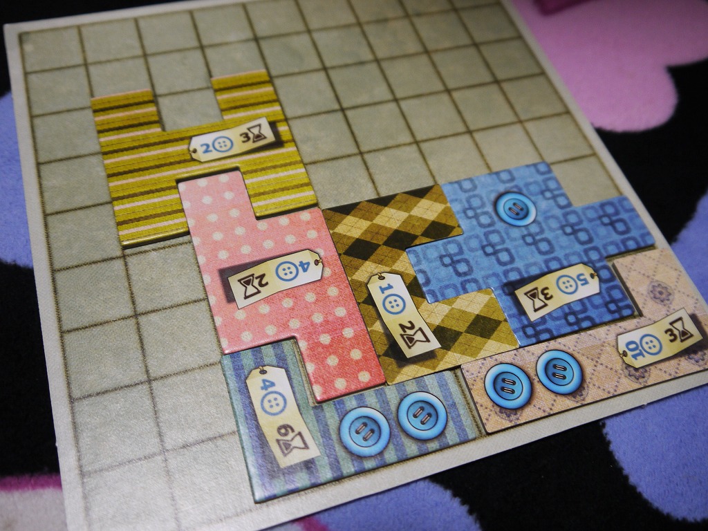 各所で評判の良いパッチワーク。作者は豆ゲーで有名なウヴェ・ローゼンベルグだ。少し前にも中量級のグラスロードを紹介したが、これは二人用ゲームの中量級。プレイ時間はフタリコラの半分ぐらいだと思う。