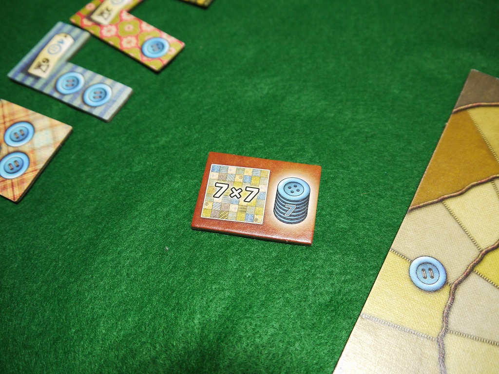 また、自分のパッチワークボードは9×9の大きさだが、先に「7×7」のエリアを全て埋めたプレイヤーは・・・