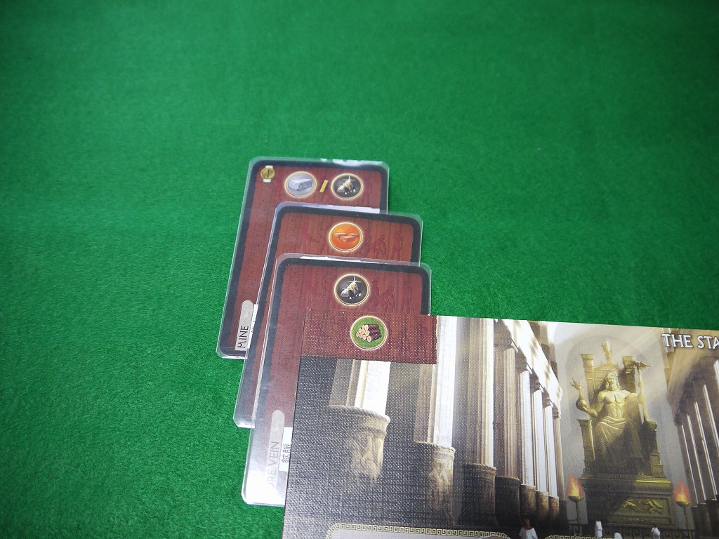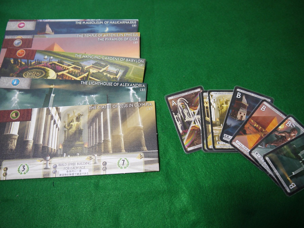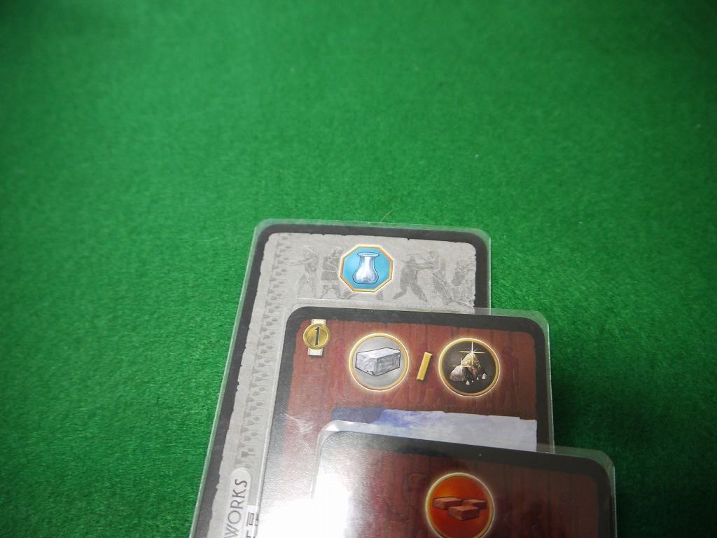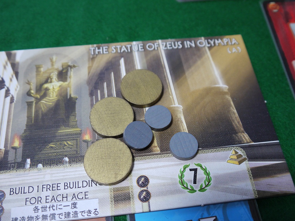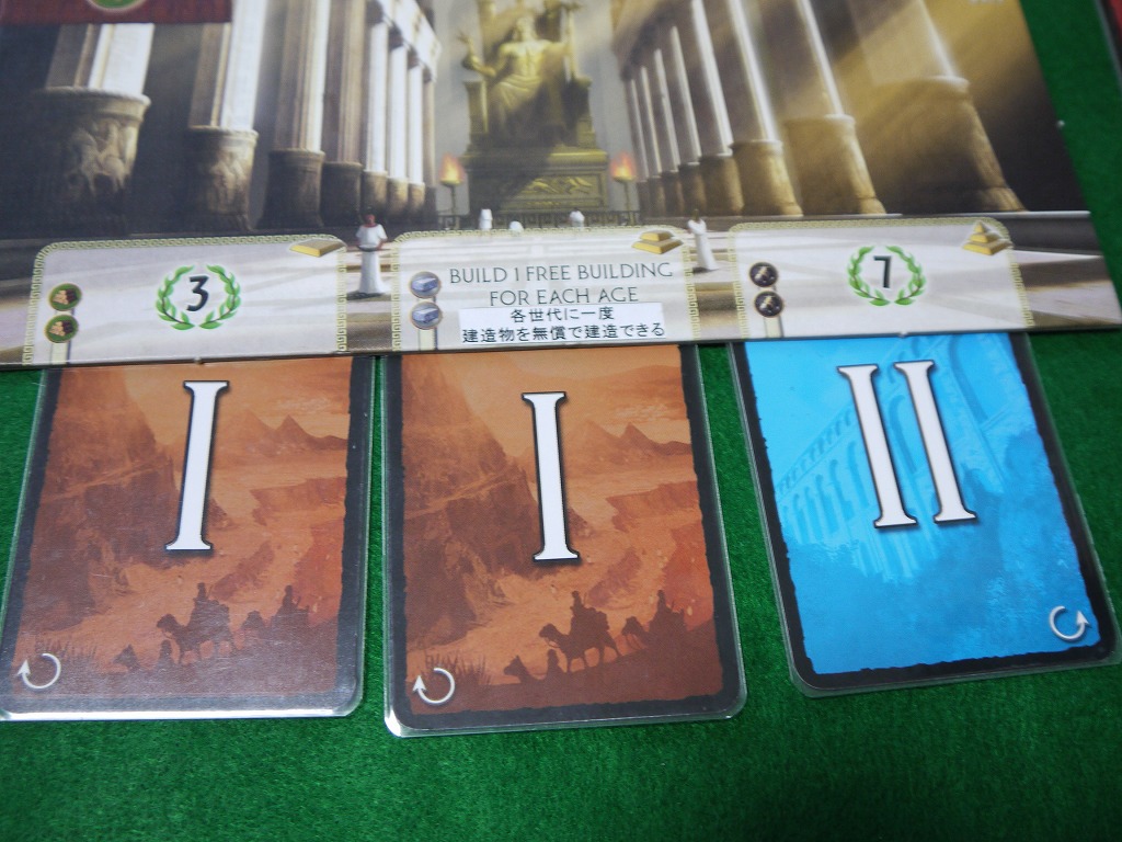 ワンダーはいくつかの段階にわかれていて、それぞれ描かれているコストが必要。カードを裏向きにして差し込むことで、その段階を建設したこととなる。左から順番に差し込む。