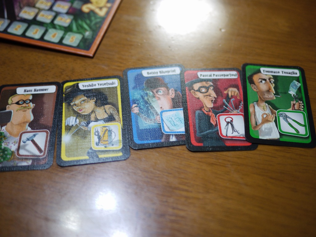 そこまで決めたら、1番手プレイヤーは道具2枚、2番手は3枚、それ以降は4枚の道具カードを持ってゲーム開始!さあ盗もう!
