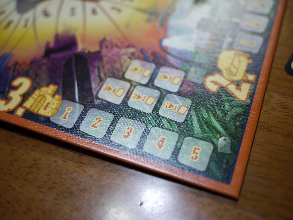 文で書くと非常に複雑で、何を言ってるか自分でも分からないが、実際には効果が発動する枚数、獲得対象などが全てボードに書かれているので、やりながら覚えられる。大丈夫。