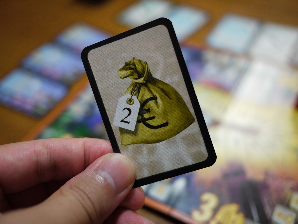 宝箱の中身は現金なので換金の必要がない。直接勝利点になるが価値は1~3と少々低め。