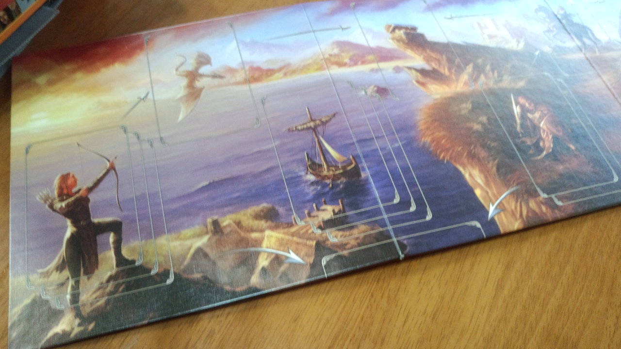 ロストシティのようにボードが付いている。ボードには各種のカード置き場が描かれており、矢印で各カードの相互作用が描かれている。機能的なボード。