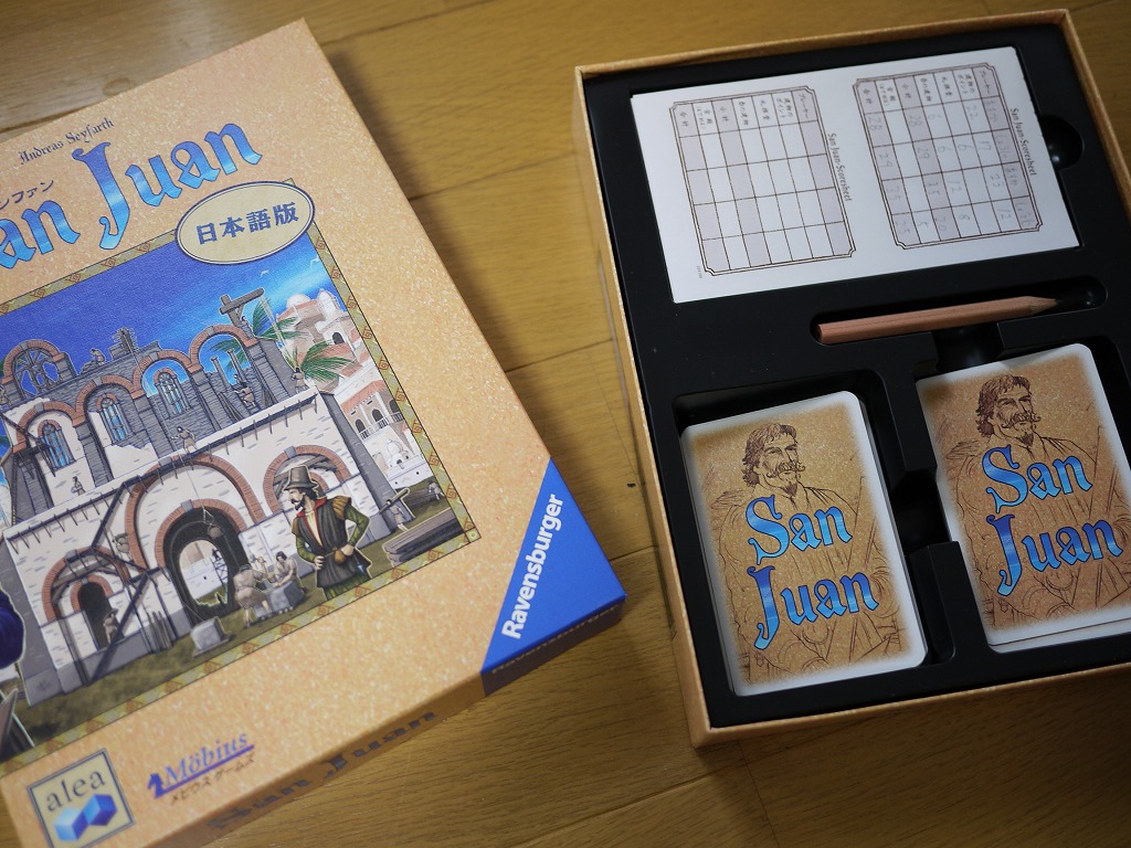 かの名作「プエルトリコ」のシステムをカードゲームに移し替えたサンファン。役割タイル以外はすべてカードで進行し、2人でやっても面白い良作だ