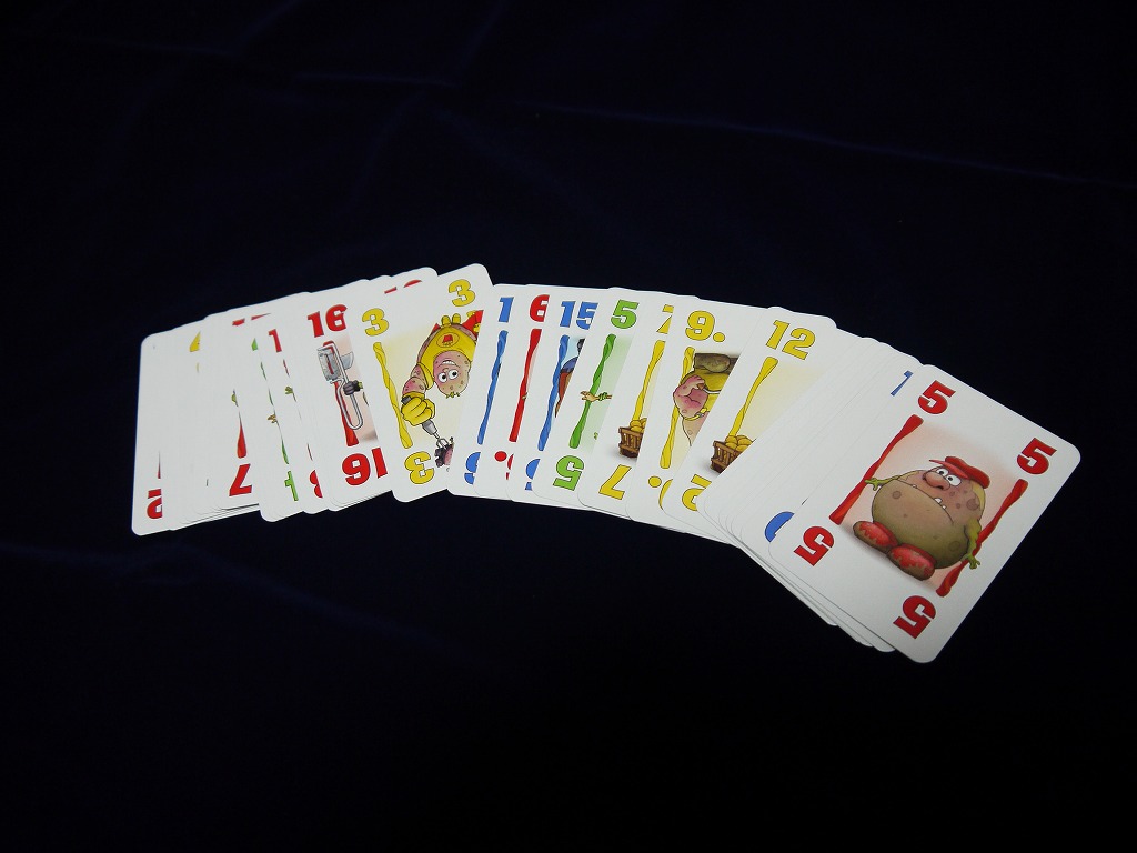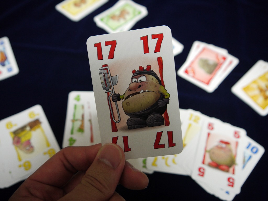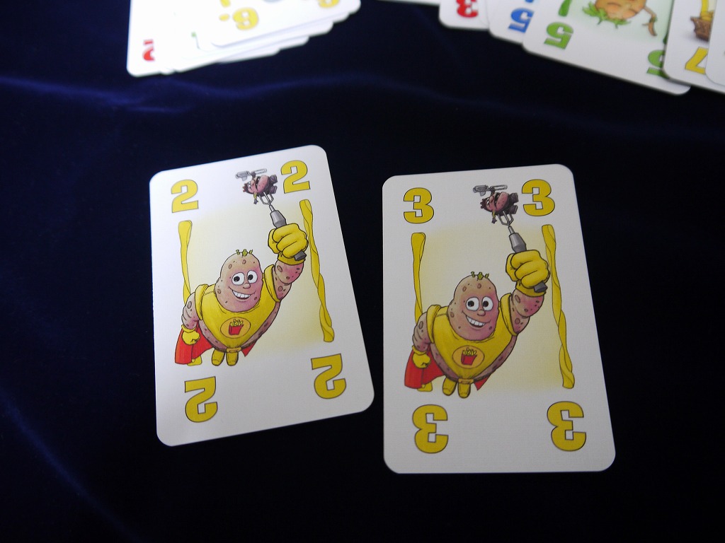 あと、めったに無いのだが、黄色の「1~3(ポテトマン)」と、赤の「16~18(ポテトキラー)」が同時に場に出ていると例外的にポテトマンが勝つ。