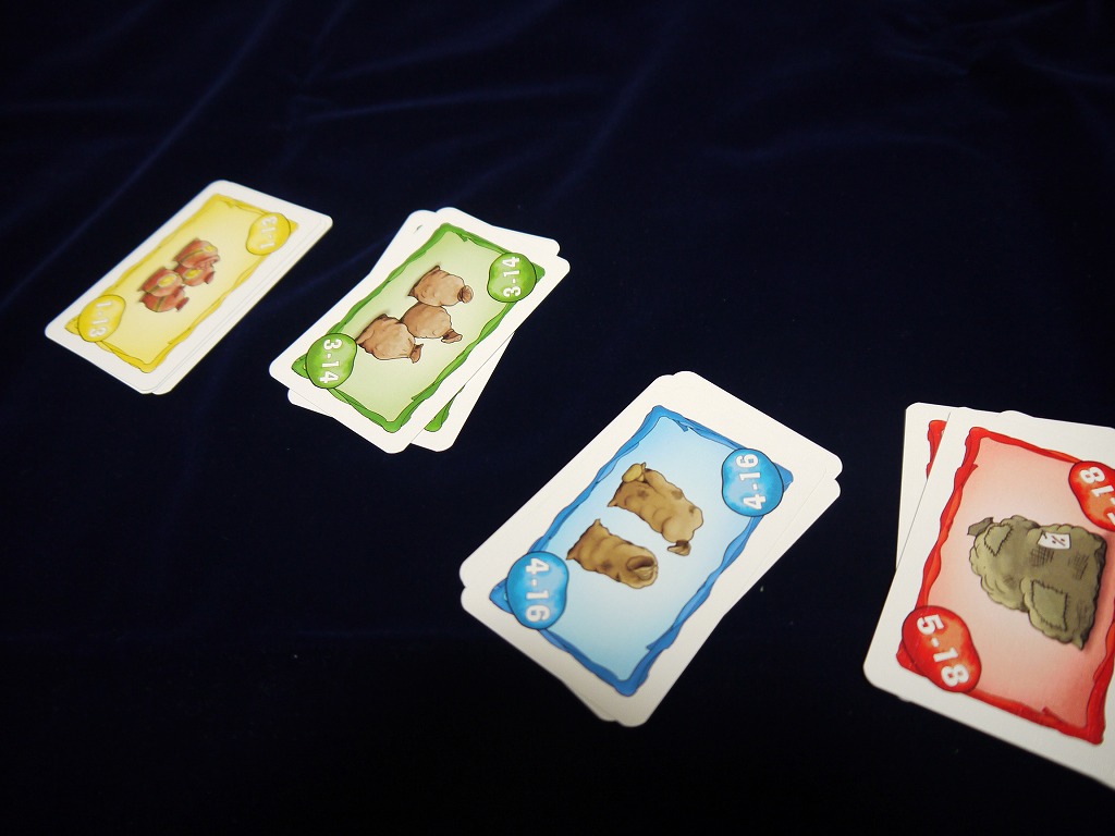ちなみにスートによって数字構成が違うので、勝ちやすい赤スートは勝っても一点。勝ち難い黄色スートは4点取得できる。