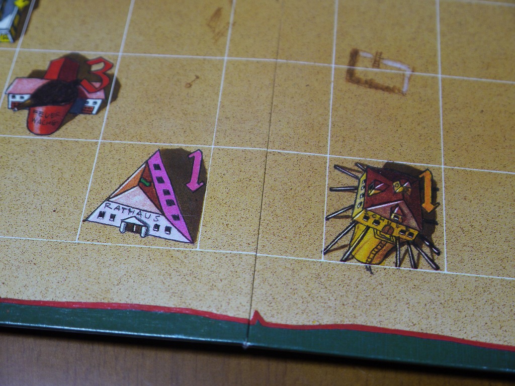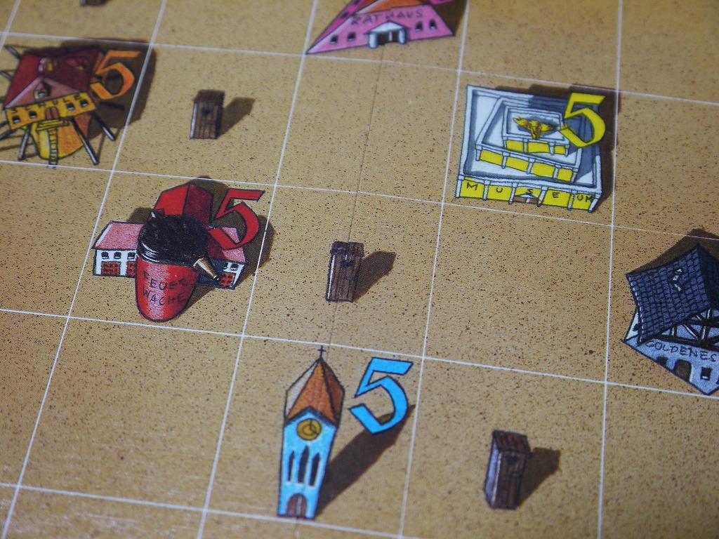 タイルを置いた時、ボードに描かれている建物を潰してしまうことがある。建物だけなら特にお咎めは無いのだが・・・。