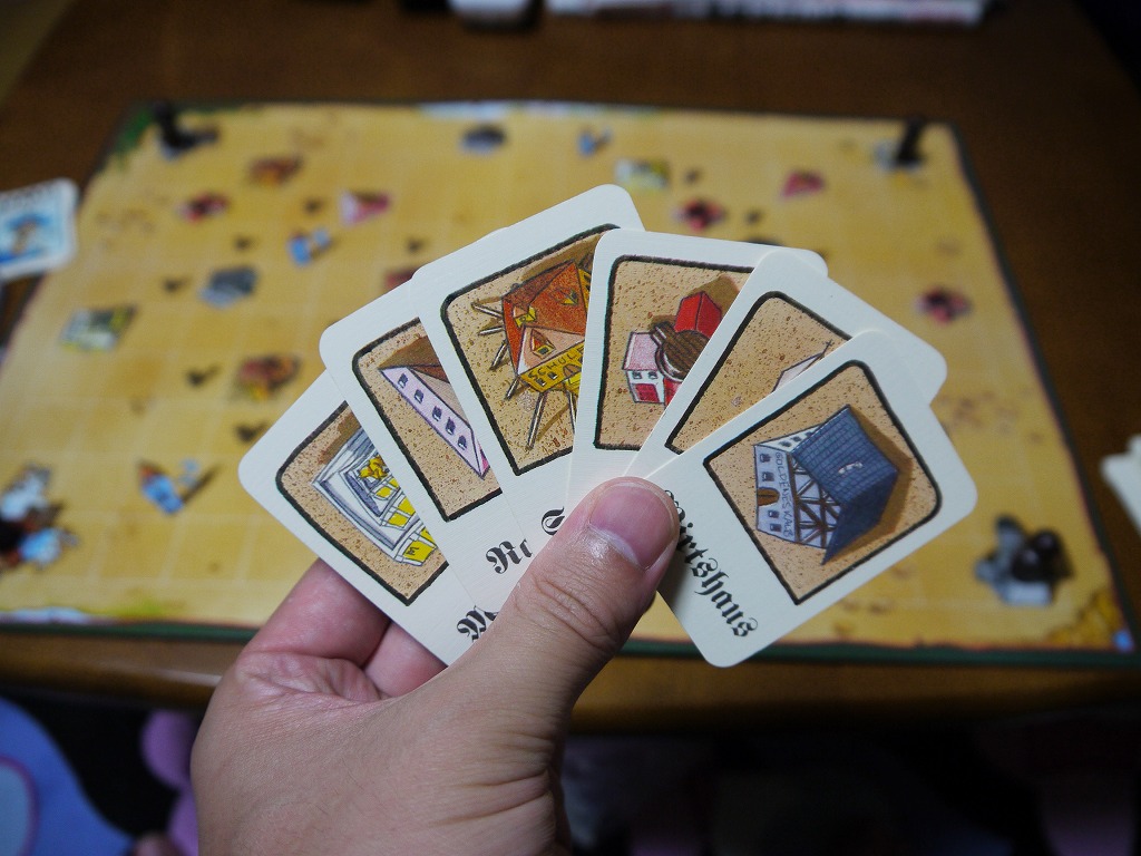 そして、一人一枚「自分の建物」カードを持つ。この建物を秘密裏に守ることがゲームの目的。