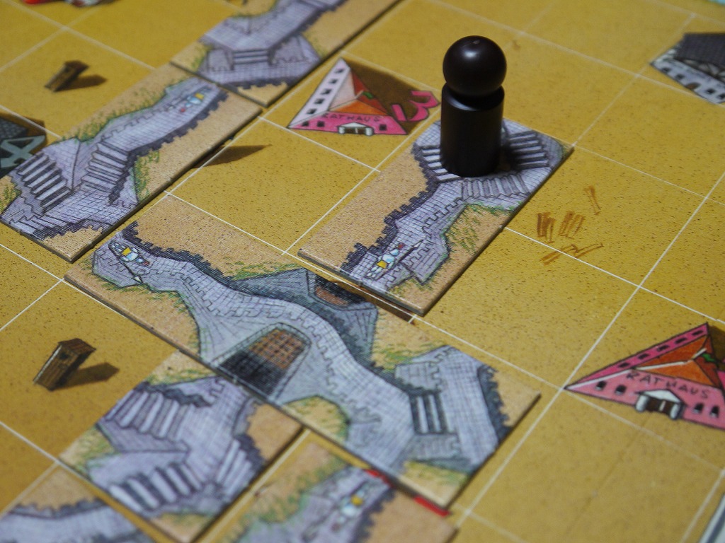 ただし、城壁には城壁、道には道と、対応するタイルを置かなくてはいけない。また、タイル同士が重なるように置いてはいけない。