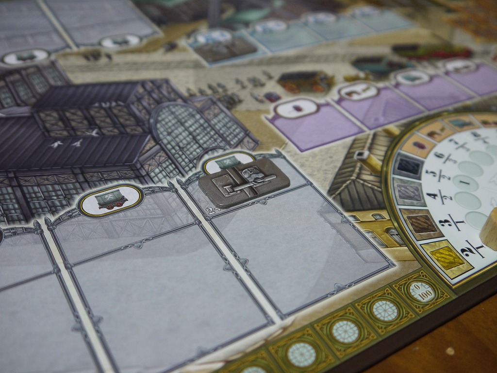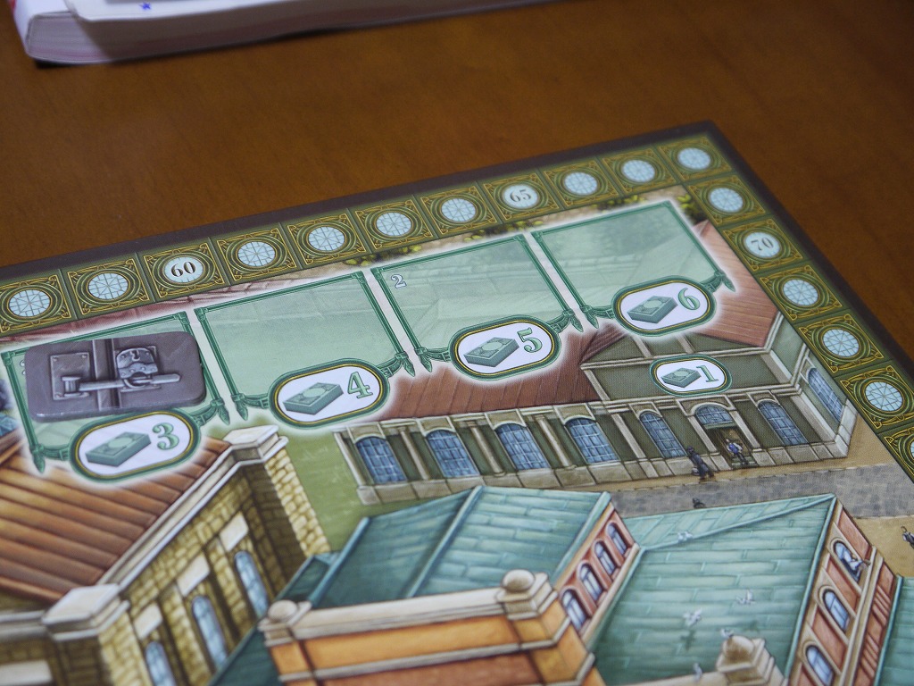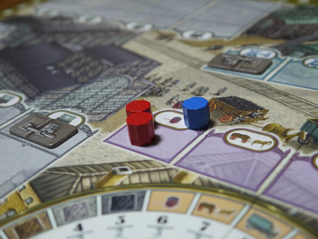ボードを見るとわかるように、同じお金をもらえるアクションであっても金額に差があったりとか、ワーカー配置場所によって優劣が有る。