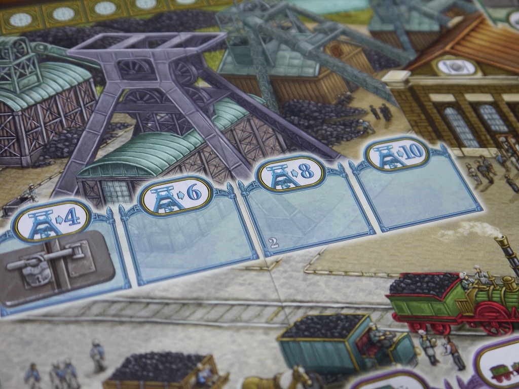 だが「炭鉱讃歌」だと、既に配置されているワーカーより多くのワーカーを送り込むことで、同じアクションを取れる。 ただ人より多くのワーカーを使ってしまうので、全体のアクション数が少なくなるのだ。このへんが悩ましい。