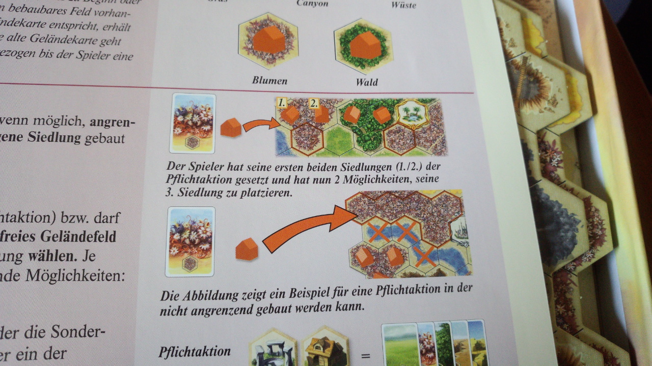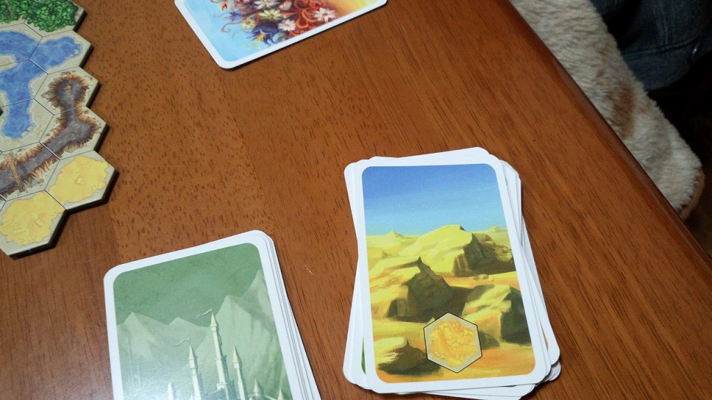 自分の手番では一枚だけ持っている手札をプレイする。ボード上には地形が5種類あり、カードも5種類。プレイしたカードの地形に3つ、自分のコマを置かなくてはならない。