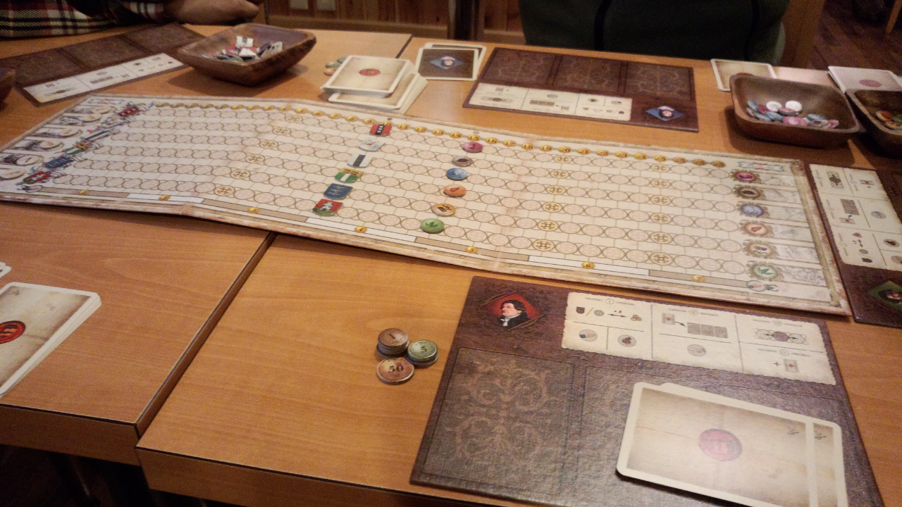タイトルは「メルクリウス」ちょうど卓が立つところだったので、「どんなゲームですか?」と聞いたところ、口々に返ってくる答えは「地味です」「色合いも地味」「淡々とやるゲーム」と言った物ばかり。