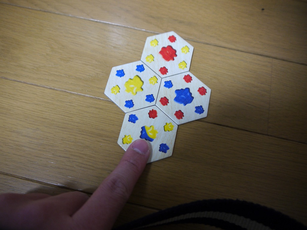 色を手に入れるには、手番にこのヘクスタイルを配置します。ヘクスタイルには赤・青・黄の3色が描かれており・・・