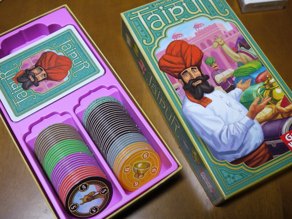 しかし金銀ダイヤは2枚セット以上でしか売れないので、どうしてもらくだを取らざるを得ない場面も出てくる。あちらを立てればこちらが立たず。毎回の手番がジレンマの連続である。日本語版がないが、コンポーネントに言語依存はないのでぜひ遊んでみてほしい。