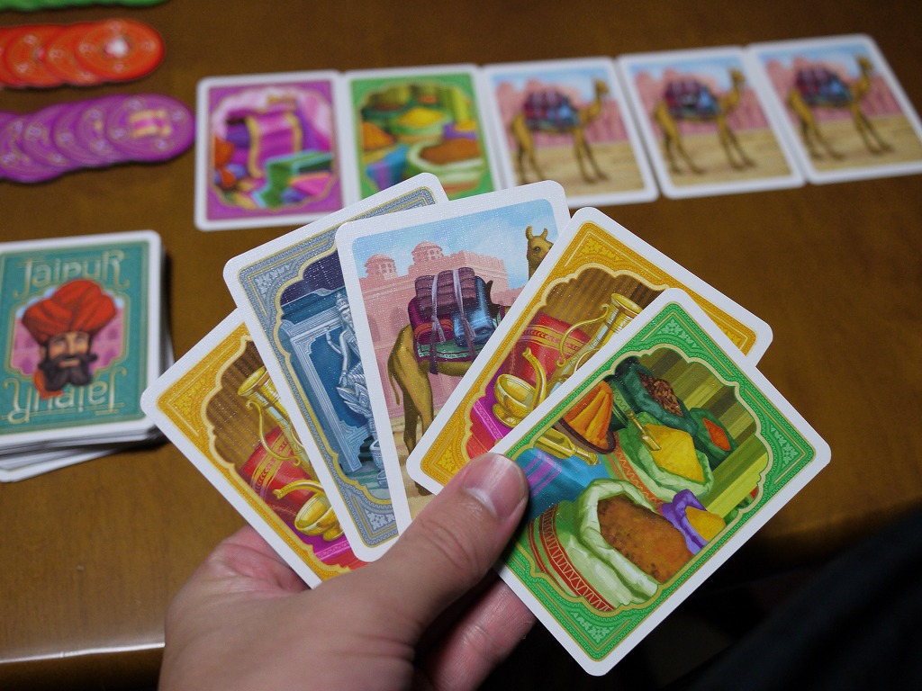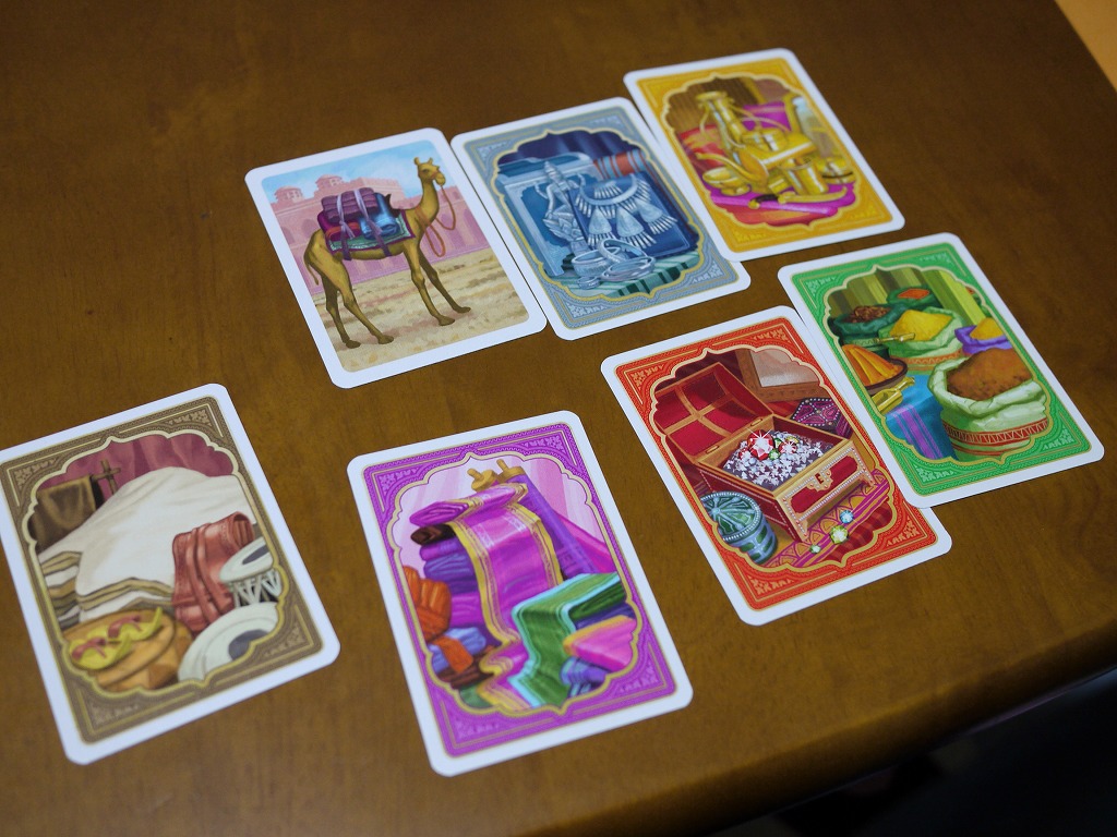 カードの種類はダイヤモンド ・ 金 ・ 銀 ・ 絹 ・ スパイス ・ 革 ・ らくだ の7種類。