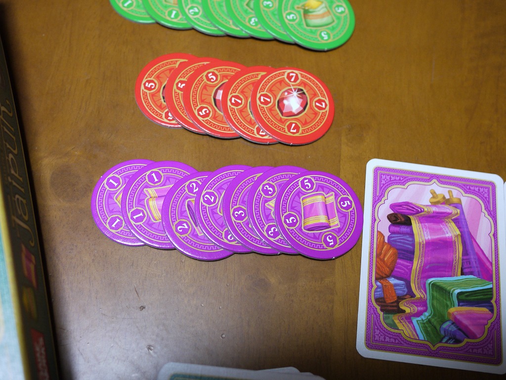 カードを売ると種類に応じた得点チップがもらえる。チップは高い点数から順番にもらうので、基本的に早めに売ったほうが高得点。