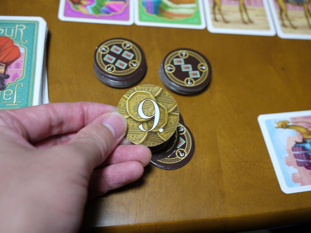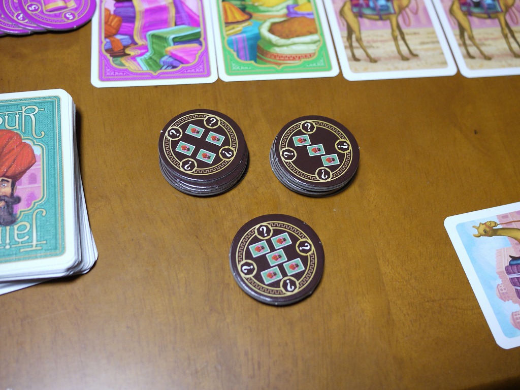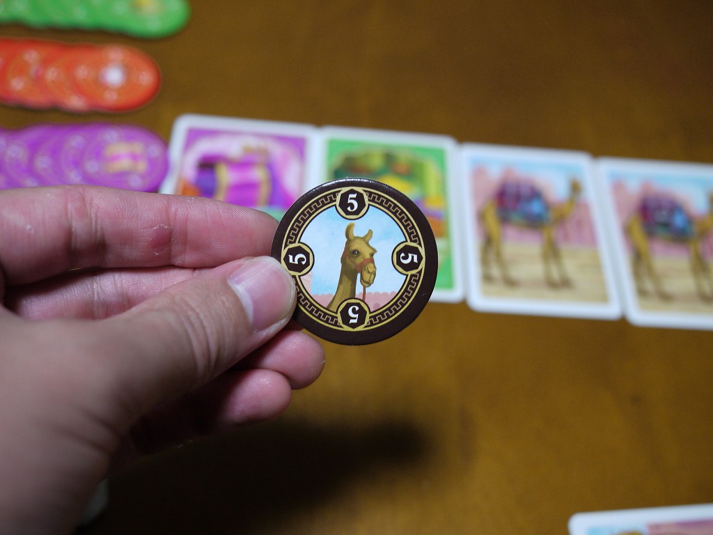 ラウンド終了時にらくだの保有枚数が多い人は、らくだチップがもらえる。コレは5点で、慣れた人同士で対戦するとこのチップが勝敗を分けることもしばしば。