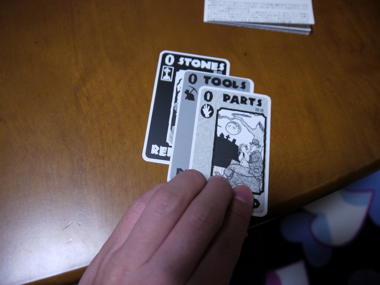 基本的にはカードゲームで、一人5枚ずつの手札を持ってスタート。最大枚数は7枚だけれど、