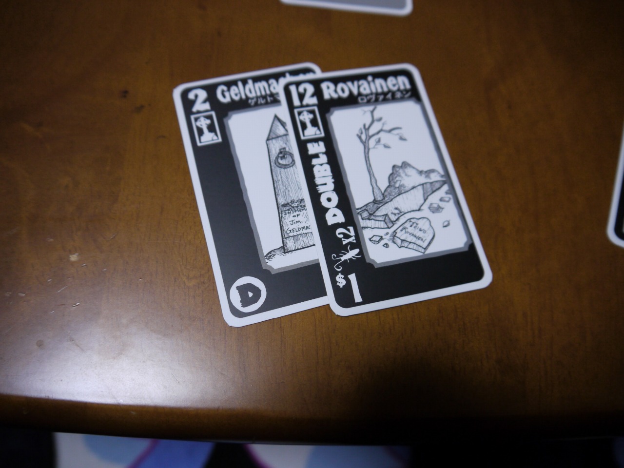 うちの家族にはトリックテイキング系のゲームはすこぶる評判が悪い!そんな連中とひねりのあるトリックテイキングなんてできるはずもなく・・・。ゲーム会に持ち込んでようやくプレイが実現しました!嬉しいー。