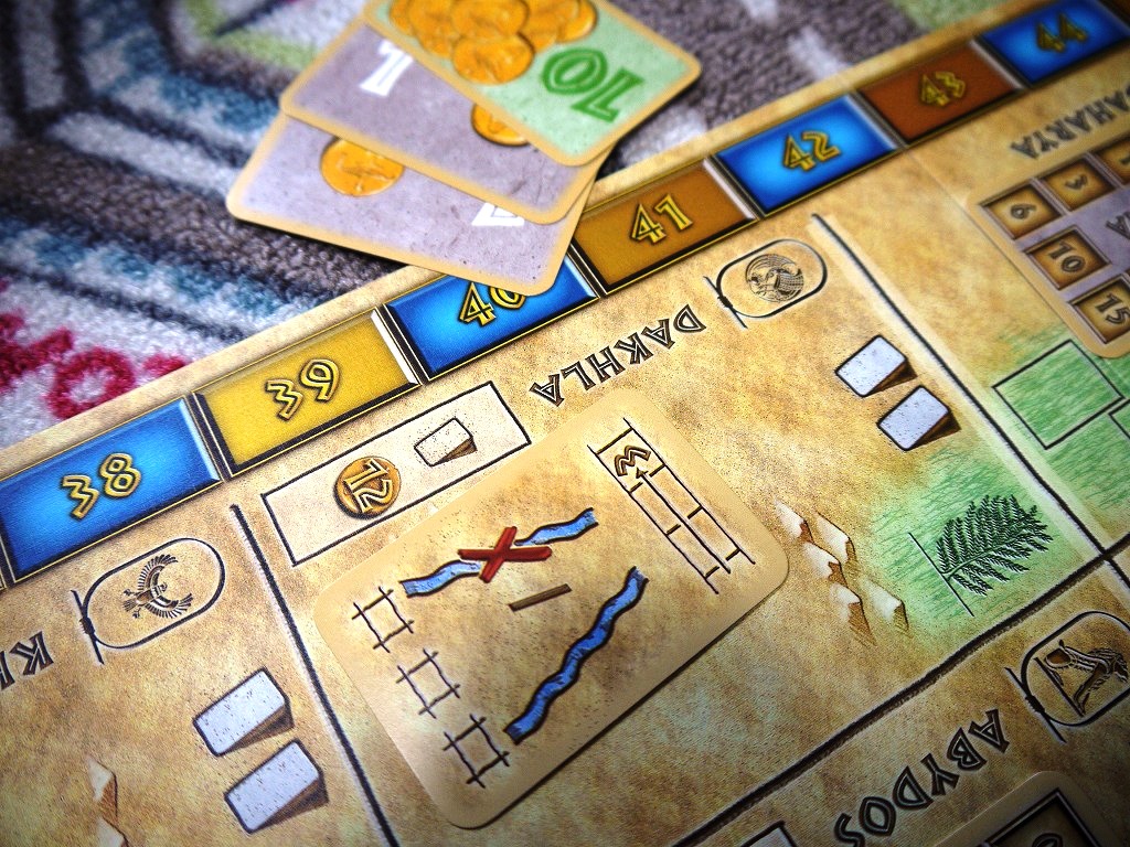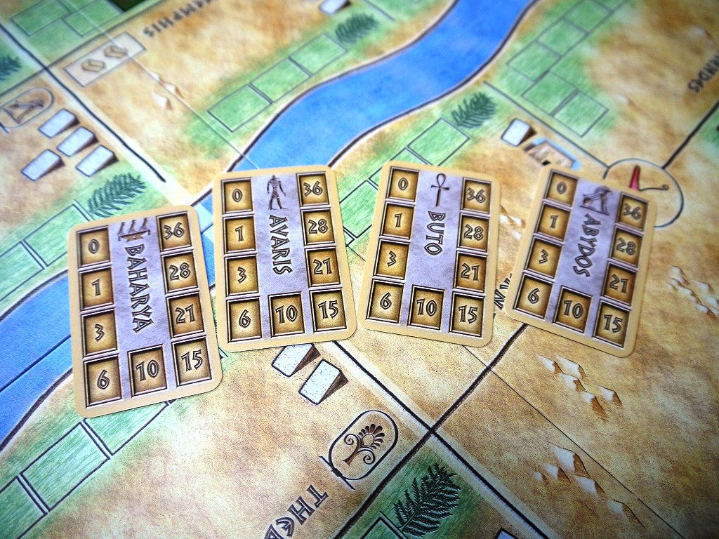 c)ナイルの右岸と左岸で、それぞれ一番ピラミッドが立っている土地の所有者が5点(同着の場合は余りの建築資材の数で決定)