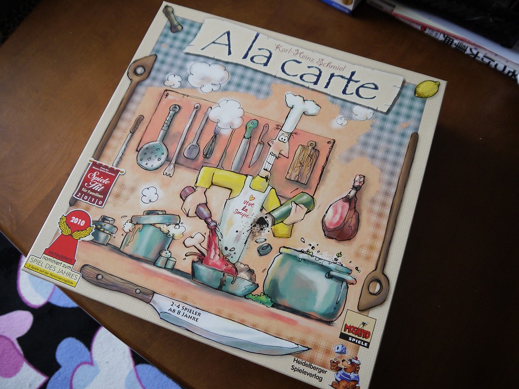 これは旧アラカルトがあまりにも品薄で手に入らないのを見かねた「モスキート・シュピーレ」が出してくれた新アラカルト。コンポーネントがめちゃくちゃ豪華になってますが、ルールが変わっています。どうも旧版の方がルールに毒があって大人向けらしい。
