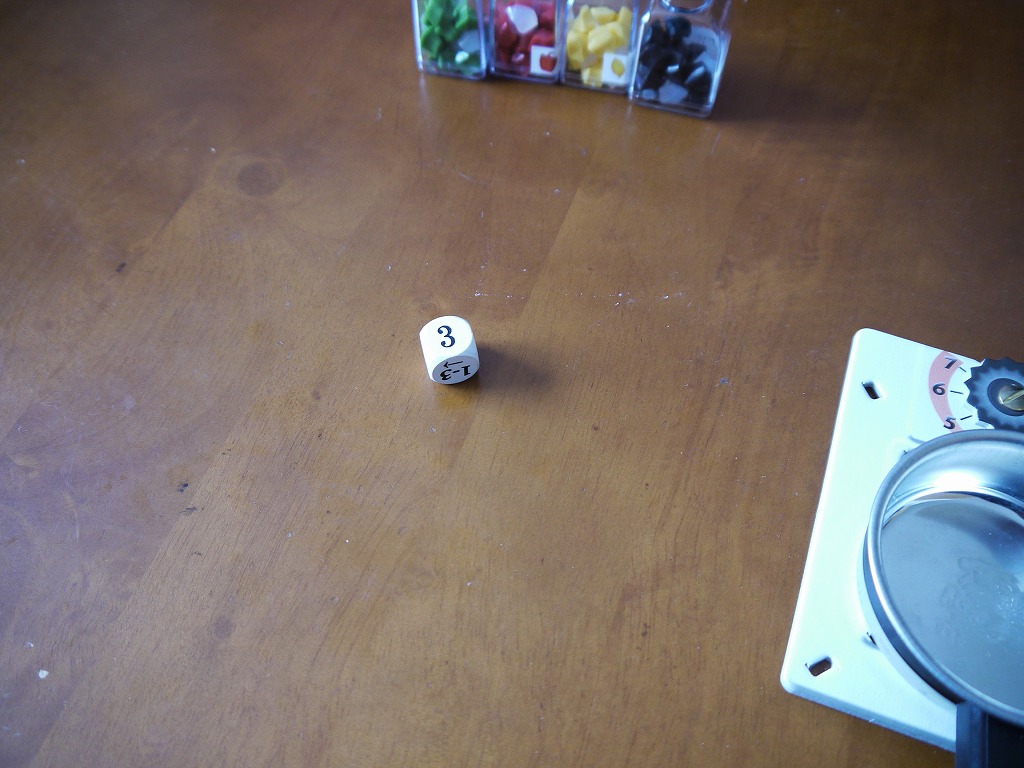 サイコロを振った場合、自分のコンロの火力を数字にしたがって上げます。下げることは(ほぼ)できません。