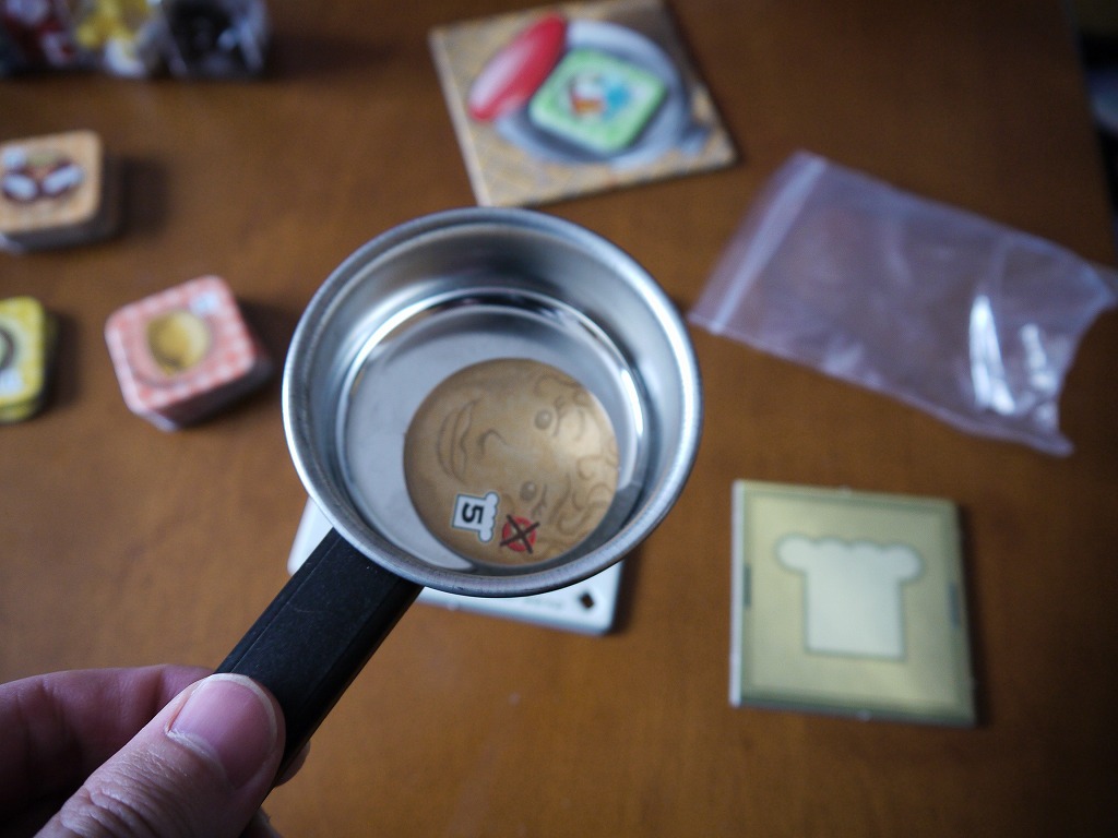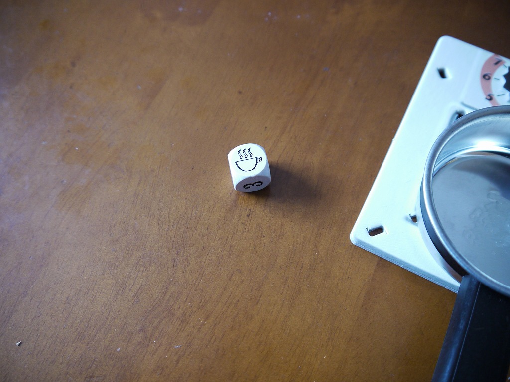 さて、さっき後回しにした「コーヒーブレイク」ですが、この目がでたらコーヒーカップタイルを一枚引きます。