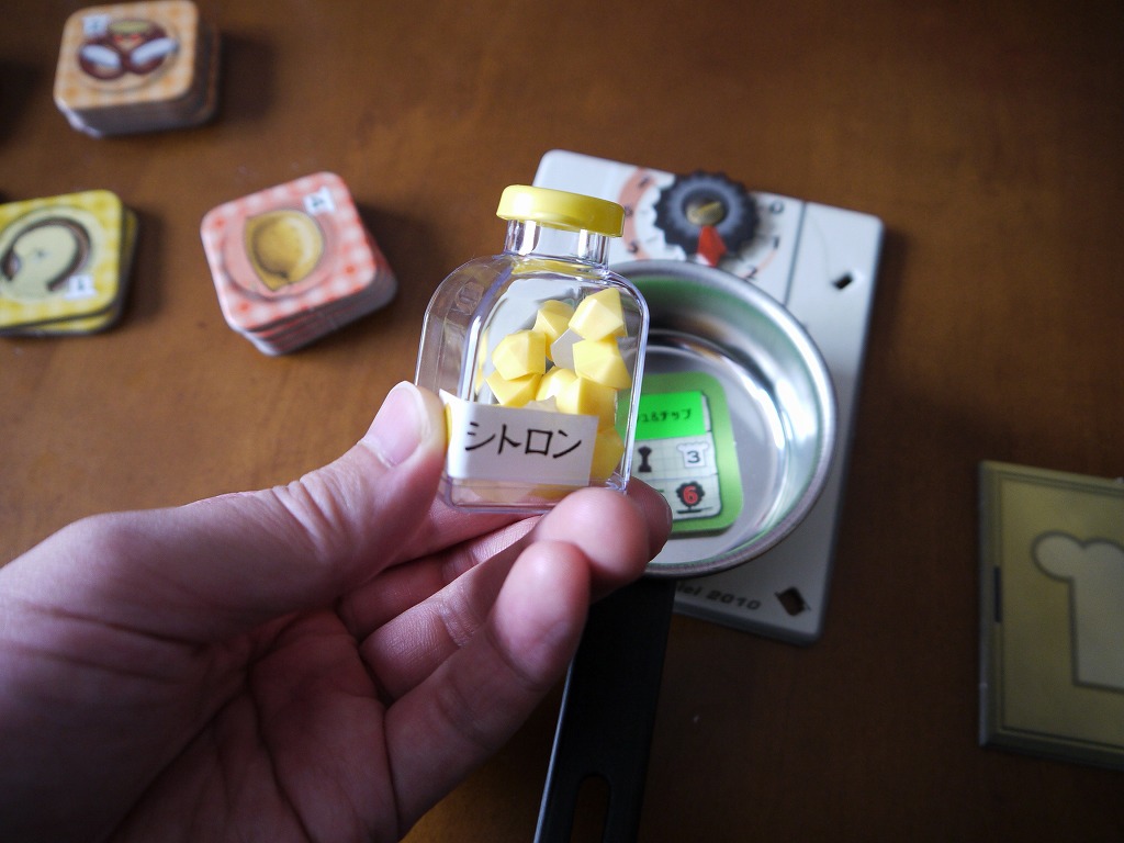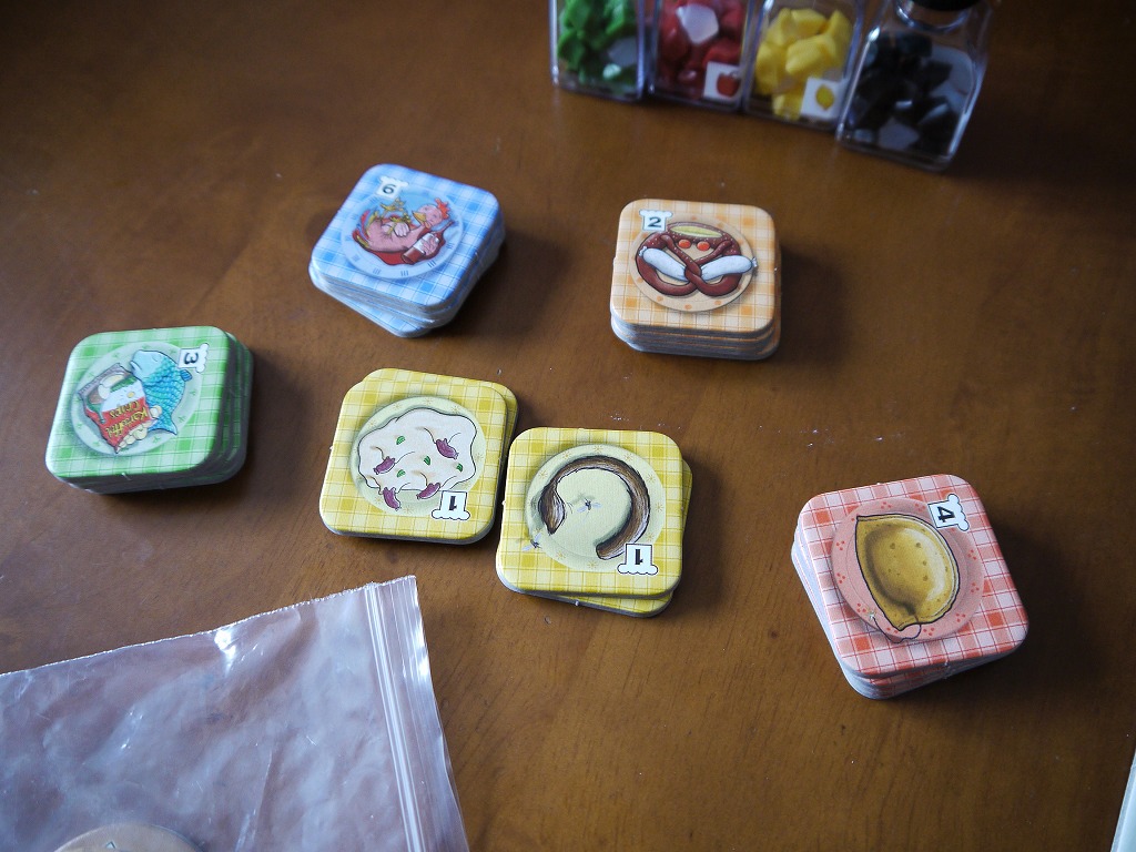 調味料を振るばあい、1アクションで1種類だけ選び、振ります。もうね、これがすごく面白い。絶対笑いがおきるので、このゲームのメインアクションはこれ。