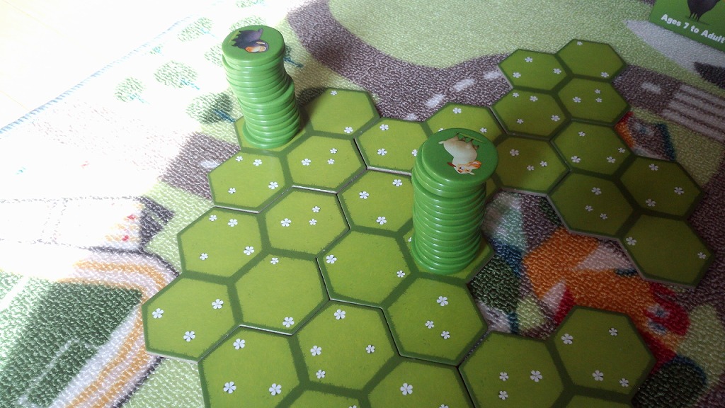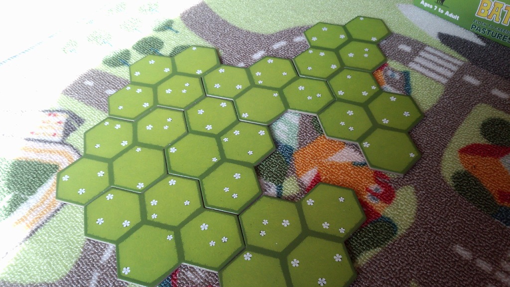 コンポーネントは、ヘクスがつながったモジュラーボードとチップだけ。正直チップがあるから値段が吊り上っている気がするが、まあこのカチャカチャした感じが「ゲームプレイしてる!」気分にさせてくれるので許せる。
