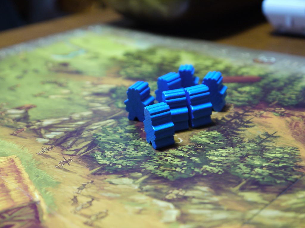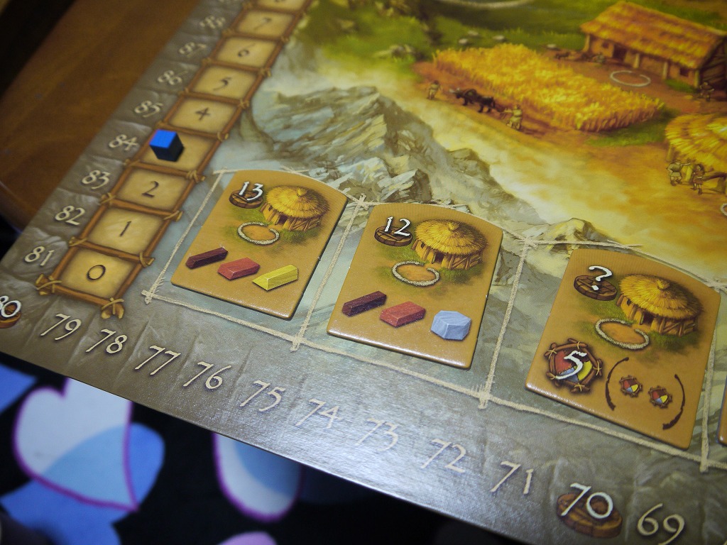・カードやタイルに任意の資源で払う物が多く、「とりあえずワーカーは木を取ってこい」となりがち